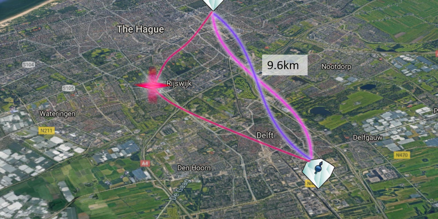 Google Maps/Kian van der EndenGraag wil ik je in de komende blogposts nog veel meer vertellen over de obstakels die we tegenkomen in het maken dit quantuminternet. Ik ga het hebben over lasers, trillingen in de grond en waarom ik hetzelfde soort glasvezel gebruik voor het quantuminternet als dat je misschien nu al thuis hebt. Stay (quantum) tuned!